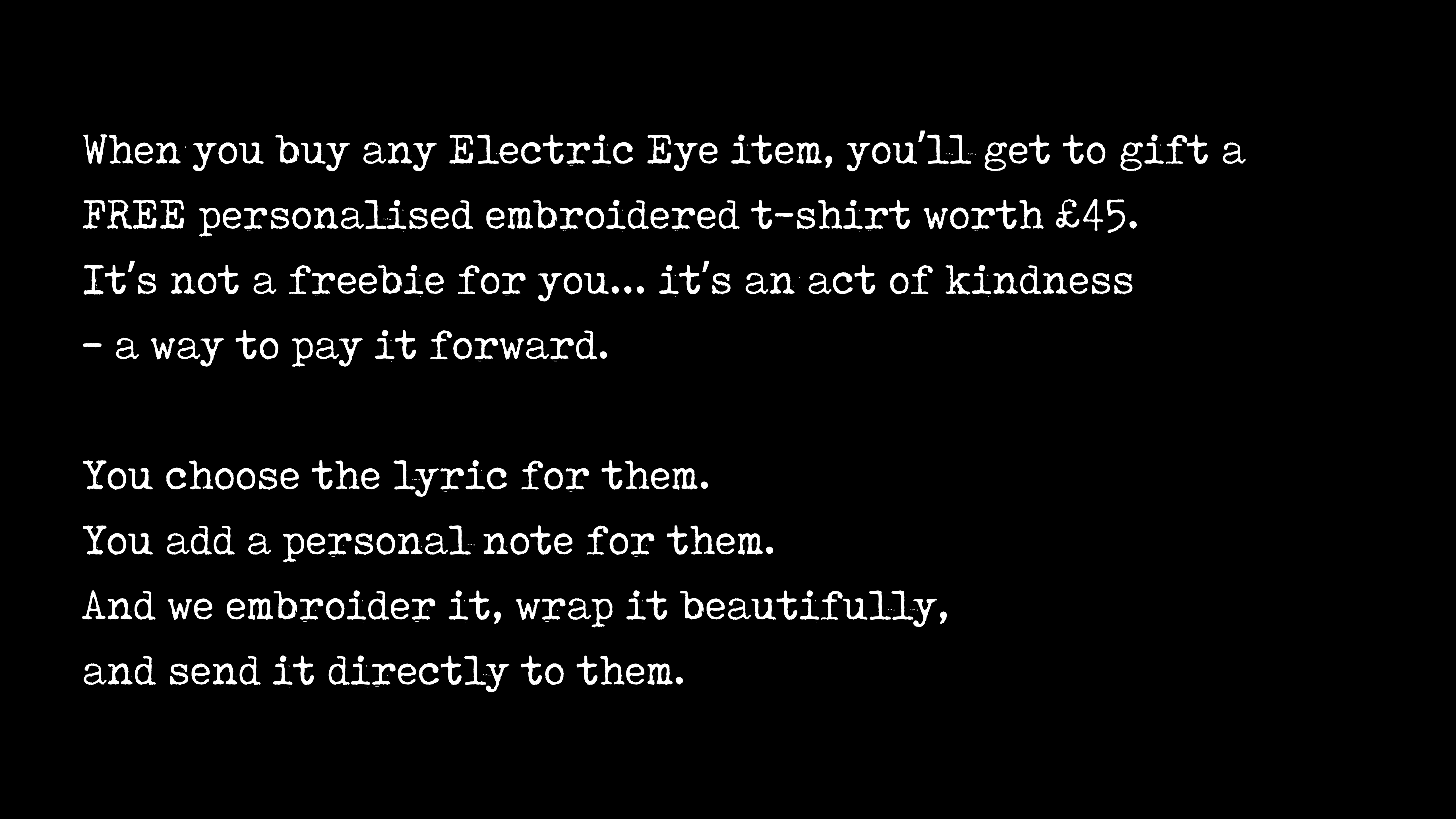 Electric Eye Apparel is a proud indie brand and every product is lovingly made to order from our studio in Manchester.