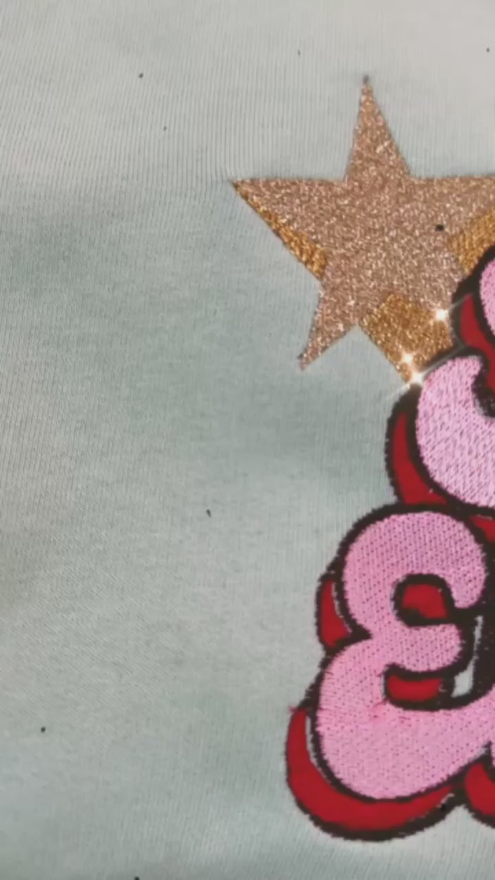 GOLD LABEL KIDS SHE'S ELECTRIC GLITTER STAR EMBROIDERED ORGANIC COTTON 'MINI CHANGER' SWEATSHIRT - INSPIRED BY OASIS.
